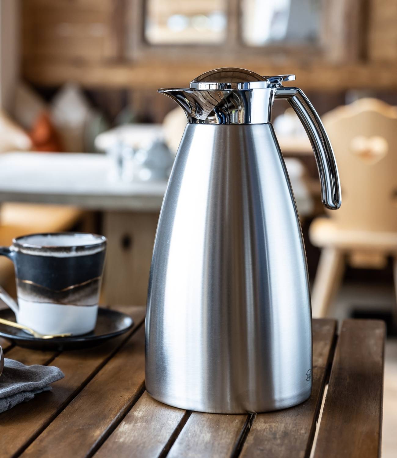 Mit Sicherheit voller Genuss: Im ansprechenden, mattierten Edelstahl verbindet die robuste GUSTO TT höchste optische Ansprüche mit herausragender Isolierleistung. Ob Kaffee oder Tee: GUSTO TT hält den Kanneninhalt heiß oder kalt. Ein Geschmackserlebnis in all seinen Facetten: Die unkomplizierte Handhabung und die leichte Reinigung von GUSTO TT in der Spülmaschine versprechen echten Nutzerkomfort ganz ohne Risiko. Um einen nachhaltig gesunden Genuss sicherzustellen, ist die Premium-Isolierkanne frei von BPA für einen gesunden Lifestyle.