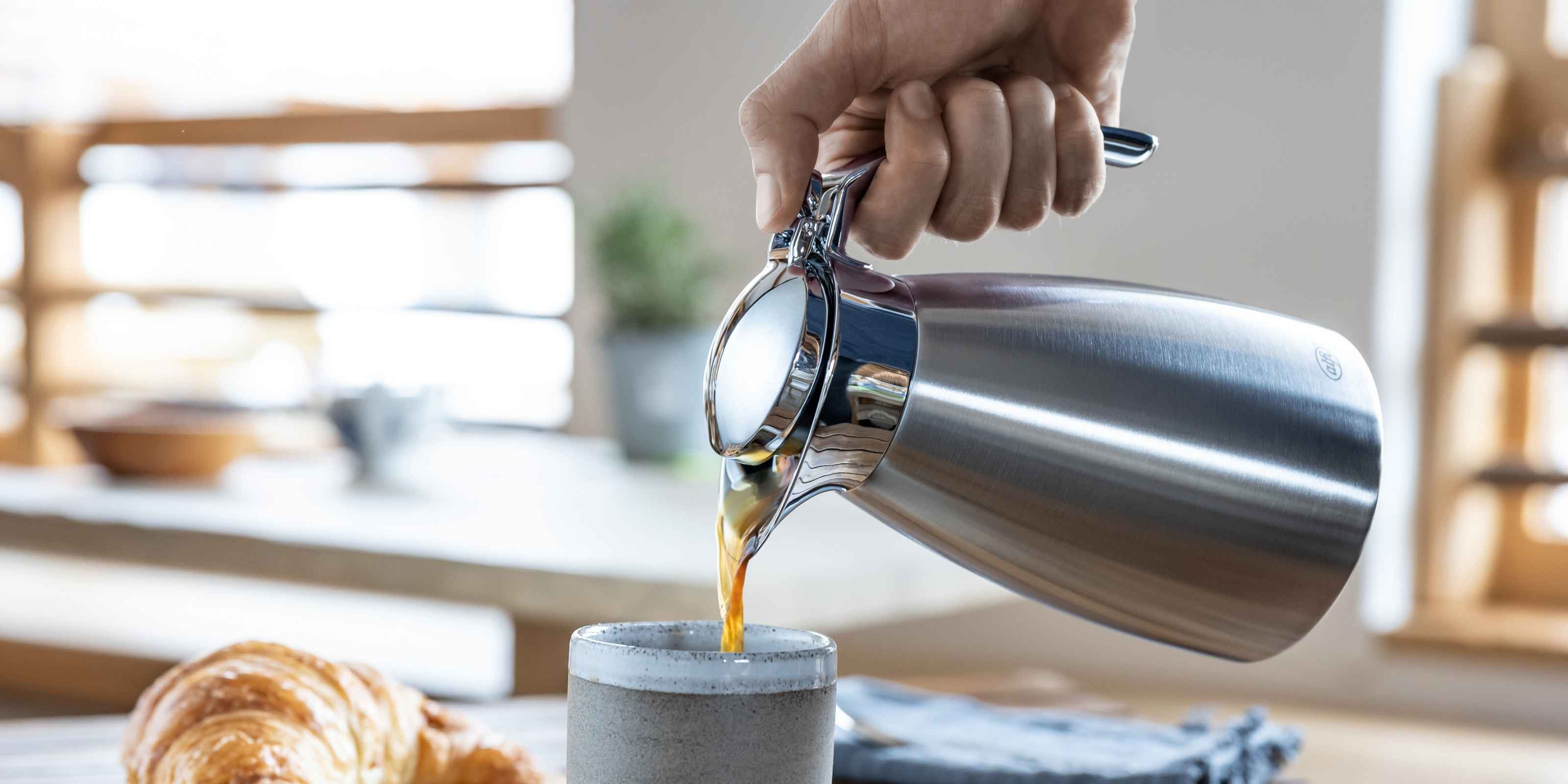 Mit leichtem Druck auf den Hebel lässt sich die Kanne bequem mit einer Hand öffnen und ausgießen.